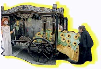 und Sonnenblumen-Happening bemalte ich einen Sarg (der nun mein eigener sein wird)