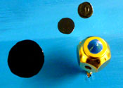 Vorgabe: Roter Strich mit schwarzen Punkten auf Blau,Mirò-ähnlich