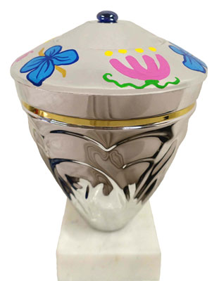 Metallurne (ca. 1,7l) Korpus mit Goldband, auf Marmorsockel