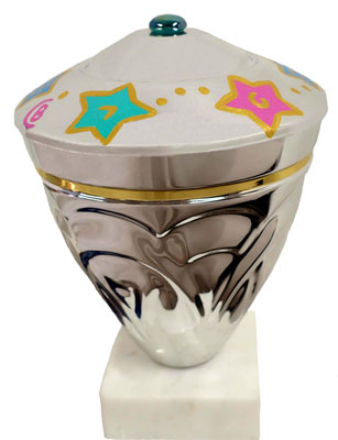 Deckel mit Glasstein, handbemalt, mit Künstlerinitialen "CB"