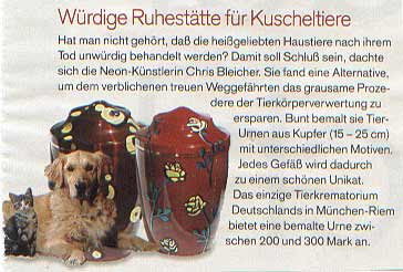 Schnelle Auswahl ENGLISH VERSION TIERURNEN TIERSÄRGE TIERHIMMEL URNEN SÄRGE KINDERURNEN KINDERSÄRGE BIOGRAPHIE PARTNER IMPRESSUM / DATENSCHUTZ AGB's