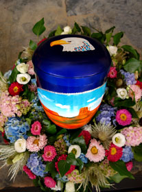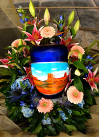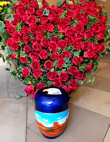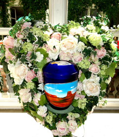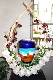 Journey of Light Urn produced to order as specified by client with floral decorations